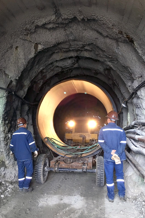 压力钢管经平车运输进入施工支洞