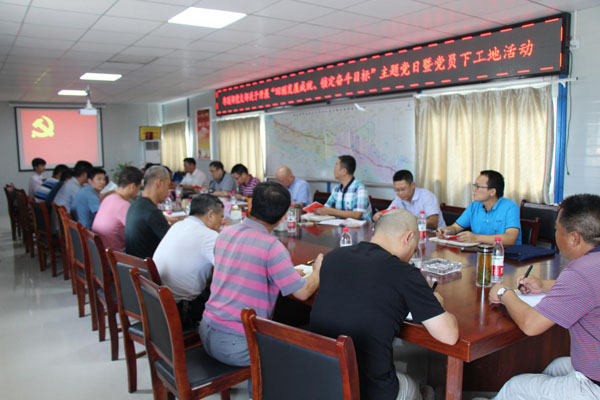 08月03日上午,鄂北局枣随部党支部书记何永煜携枣随部全体党员一行来到鄂北调水2016年四标项目部与项目部党员同志们联合开展了“回顾发展成就、锁定奋斗目标”主题党日活动。鄂北局党委委员、总工程师陈长江参加活动,活动由枣随部党支部书记何永煜主持。